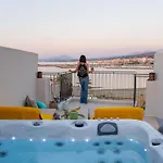 V77 Seafront Suites, gelegen in de wijk Rethymno - Oude Binnenstad in Rethimnon, bieden luxe zoals een bubbelbad. De dichtstbijzijnde luchthaven Chania bevindt zich op 70 km van het appartement.